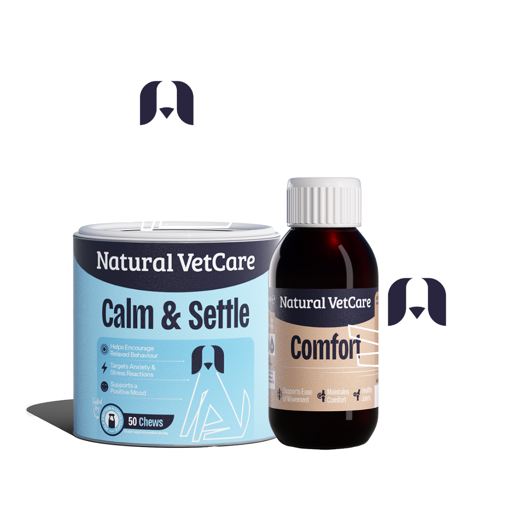 The Calm & Comfortable bundle is designed for dogs who carry their worries in their bodies, or their tension in their tummies, joints or muscles. Calm & Settle helps support emotional balance, encouraging relaxed behaviour and confident calm without sedation. Comfort complements this by supporting physical ease and joint comfort with high strength omega 3s.